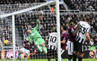 纽卡2-1伯恩利,吉马良斯角球破门,戈登点射建功